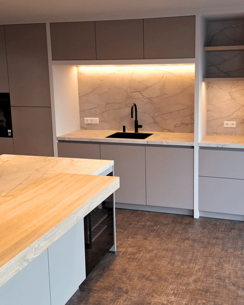 Is je keuken toe aan vernieuwing, maar technisch nog in goede staat? Met een keukenrenovatie geef je jouw keuken een compleet nieuwe uitstraling, zonder een volledige verbouwing. Denk aan nieuwe fronten, werkbladen en afwerking op maat.